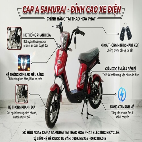 XE ĐẠP ĐIỆN CAP-A PHANH ĐĨA MÀU ĐỎ